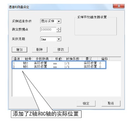 ?3) 增加Z軸的實(shí)際位置采樣為通道1,如圖: