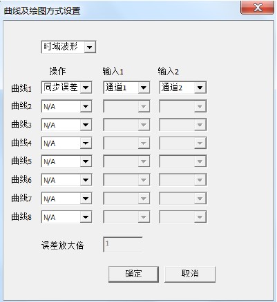 ?7) 設(shè)置曲線1類型為同步誤差,輸入1和輸入2分別為通道1和通道2,如下圖: