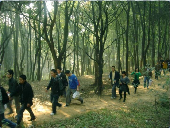 8點(diǎn)整,大家都相繼趕來,臨出發(fā)前,由于獎(jiǎng)品太多又重,男同事們都很自覺的挑起重?fù)?dān),其中涂濟(jì)和姜文禮表現(xiàn)最為突出。8點(diǎn)30,遠(yuǎn)足活動(dòng)開始,我們從華中科技大學(xué)南大門出發(fā),途經(jīng)華中科技大學(xué)、地質(zhì)大學(xué)、中航181、郵科院、南望山、東湖、植物園,大家積極響應(yīng),途中你追我趕,互幫互助。行至南望山頂,我們留下來合影,給我們此次活動(dòng)和整個(gè)人生留下美麗的一刻。