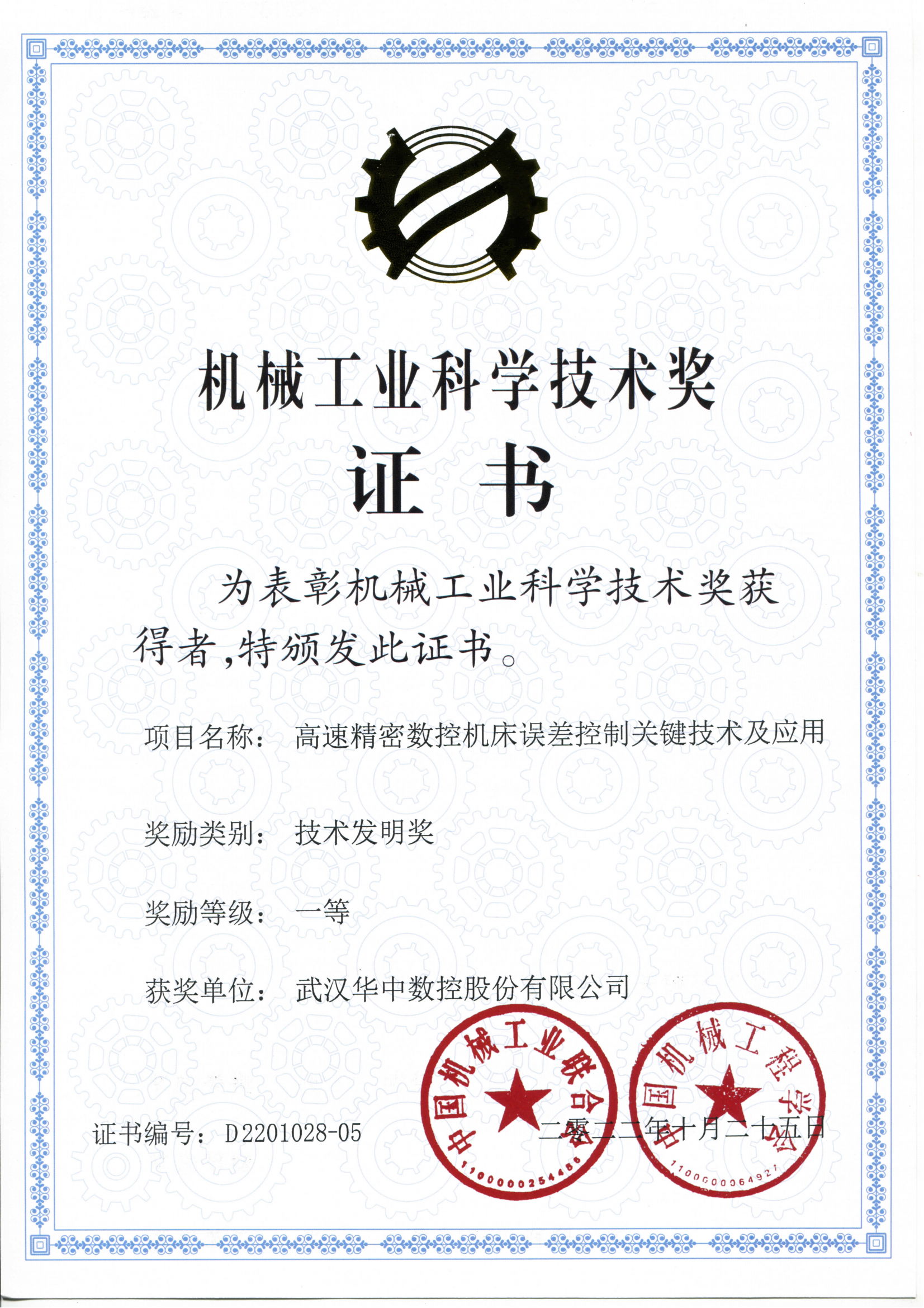 中國機械工業(yè)科學技術(shù)發(fā)明一等獎:高速精密數(shù)控機床誤差控制關(guān)鍵技術(shù)及應(yīng)用