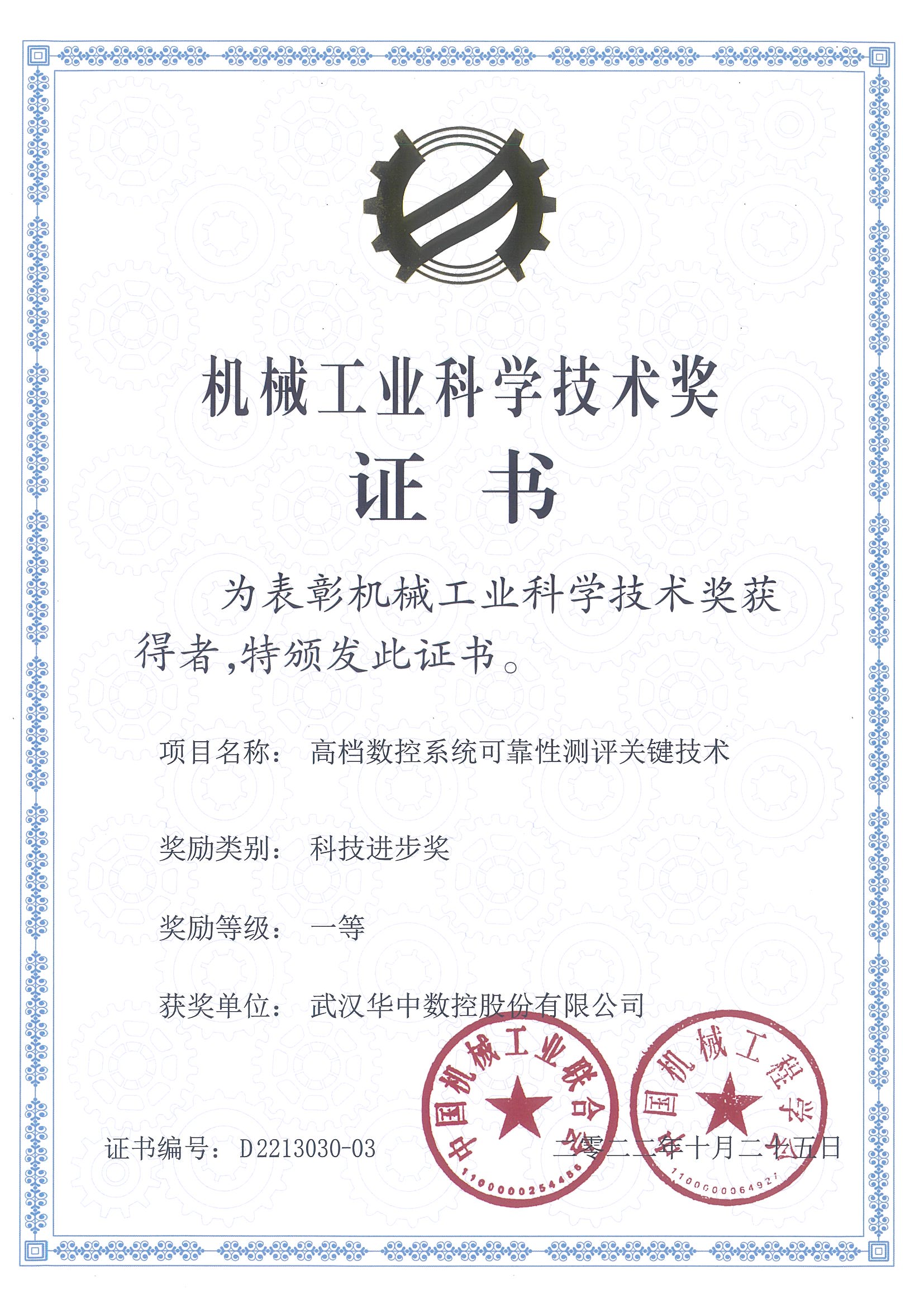 中國機械工業(yè)科技進步一等獎:高檔數(shù)控系統(tǒng)可靠性測評關(guān)鍵技術(shù)