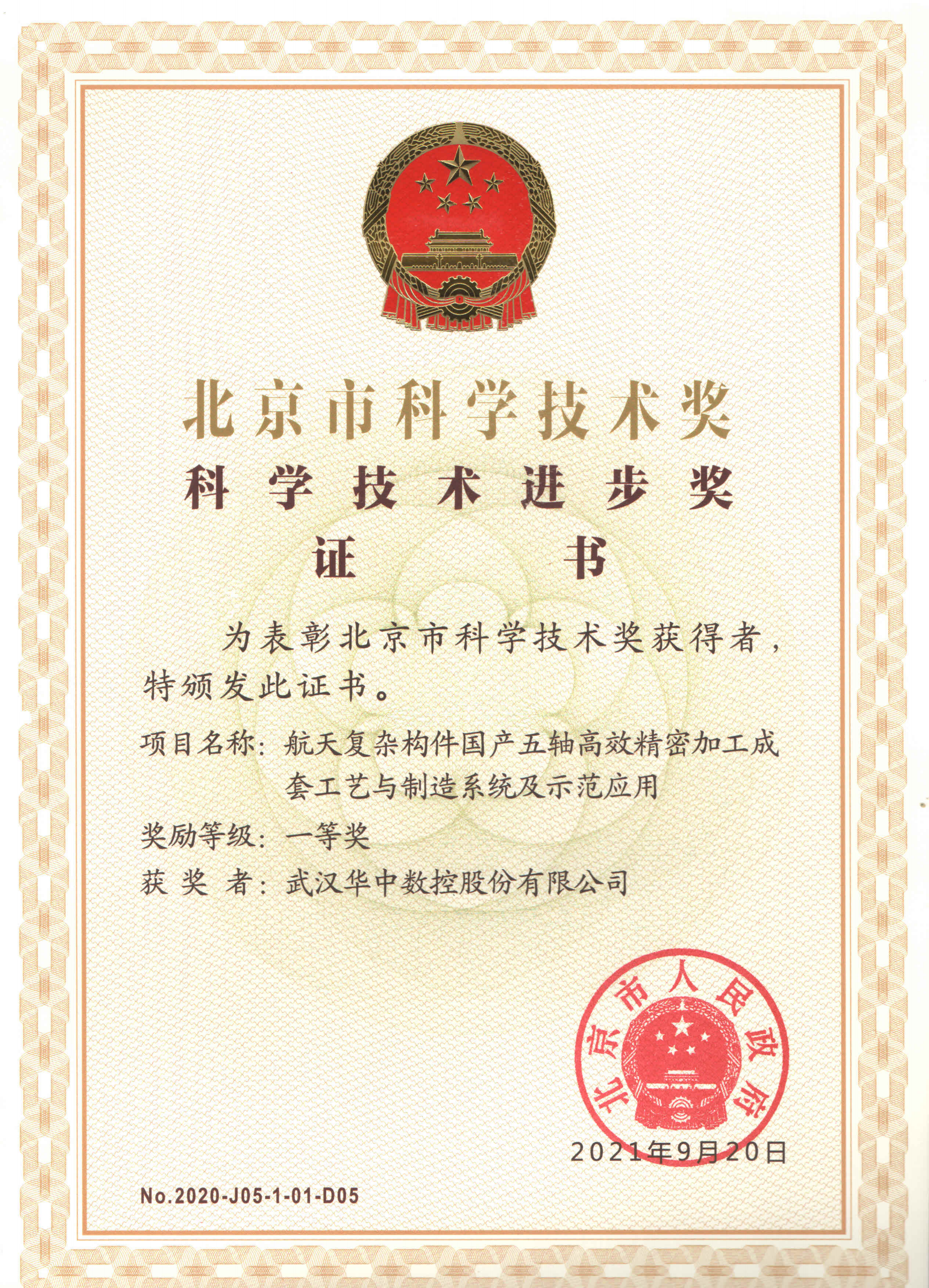 北京市科技進步一等獎:航天復雜構(gòu)件國產(chǎn)五軸高效精密加工成套工藝與制造系統(tǒng)及示范應(yīng)用