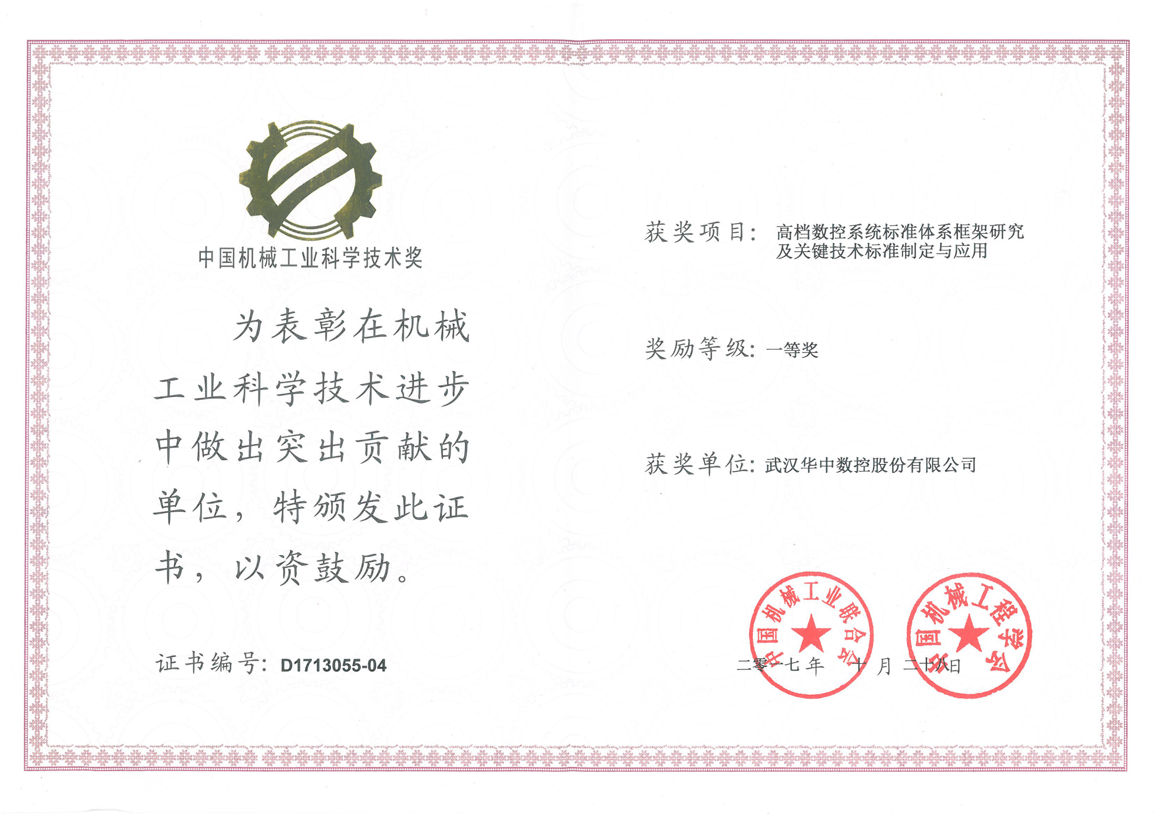 中國機械工業(yè)科學技術(shù)一等獎:高檔數(shù)控系統(tǒng)標準體系框架研究及關(guān)鍵技術(shù)標準制定與應(yīng)用