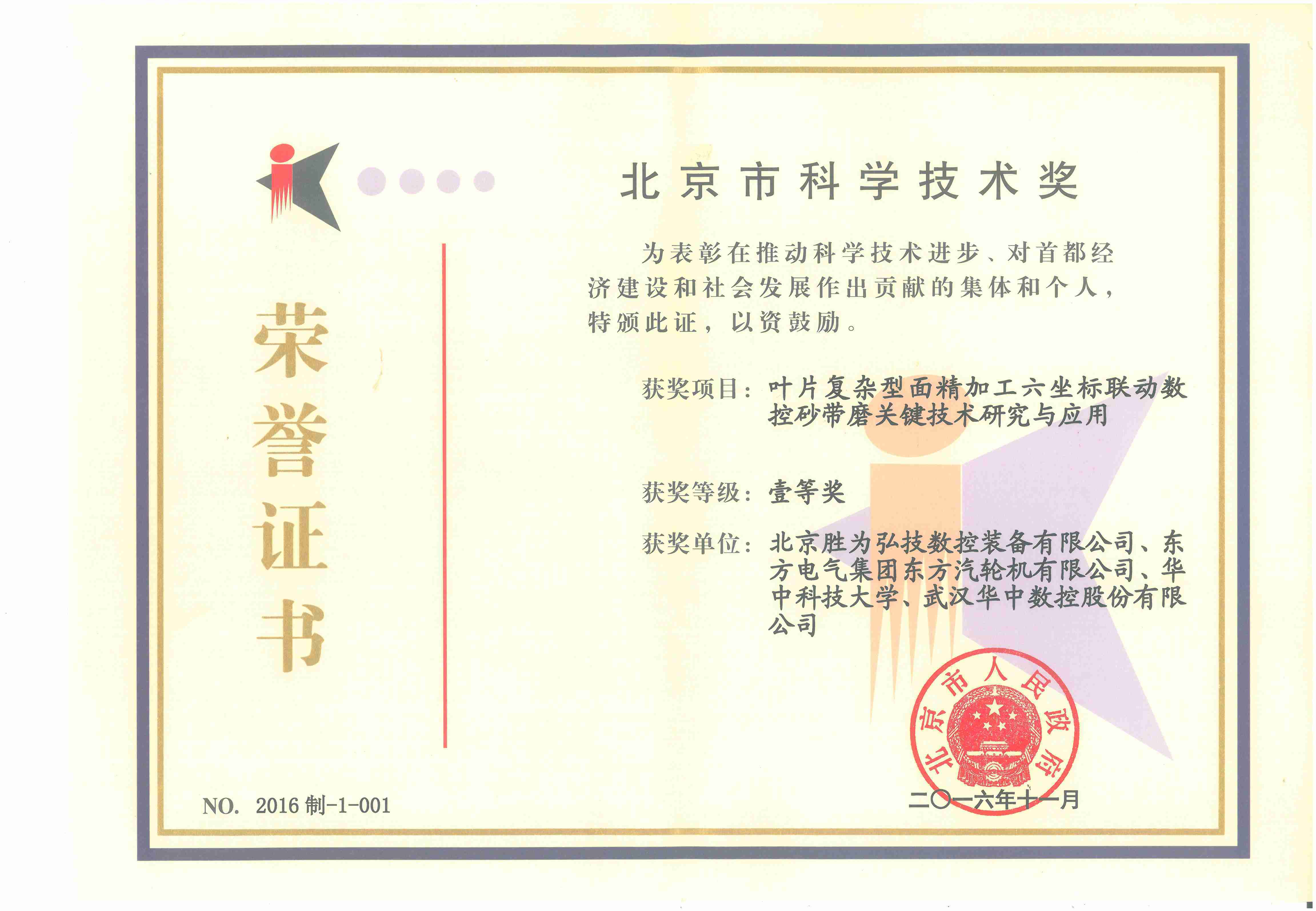 北京市科學技術(shù)一等獎:葉片復雜型面精加工六坐標聯(lián)動數(shù)控砂帶磨關(guān)鍵技術(shù)研究與應(yīng)用