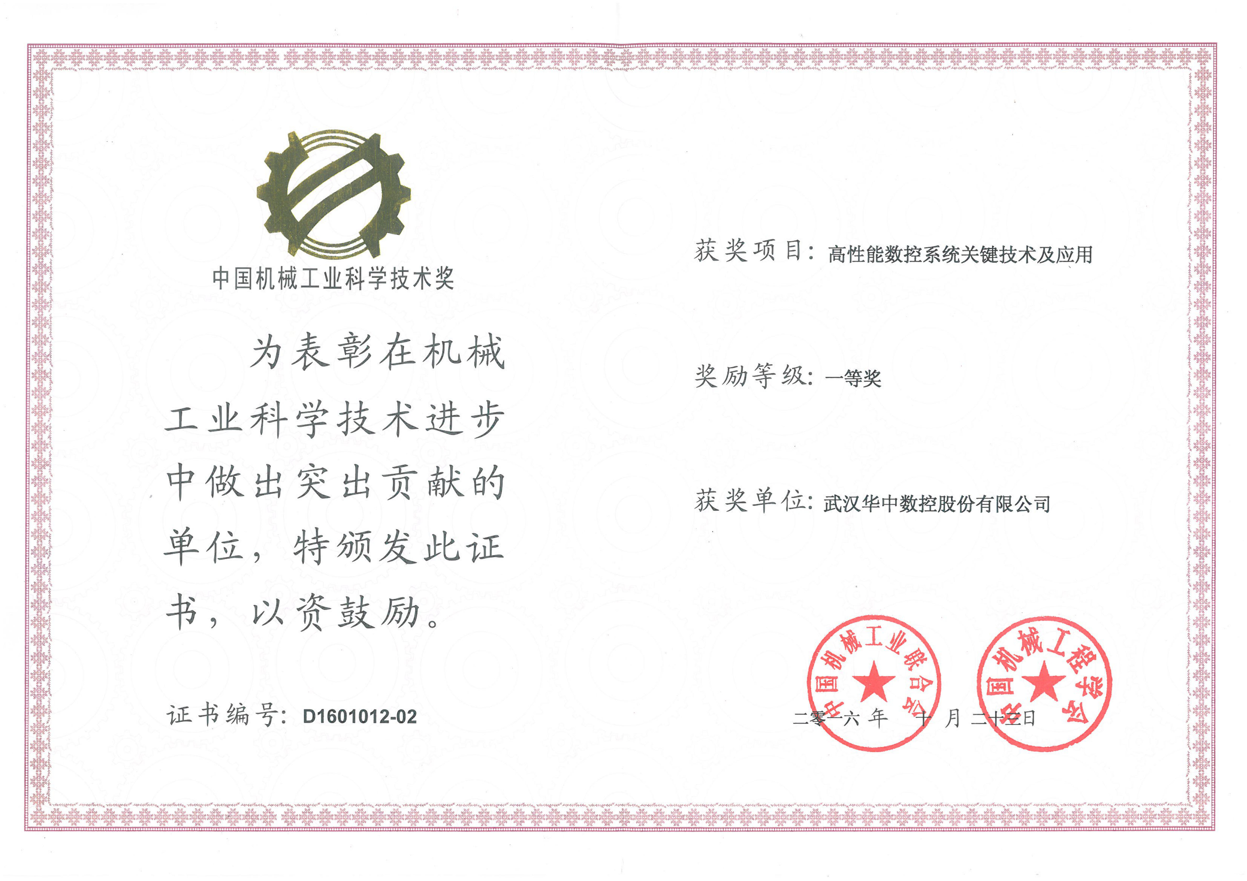 中國機械工業(yè)科學技術(shù)一等獎:高性能數(shù)控系統(tǒng)關(guān)鍵技術(shù)應(yīng)用